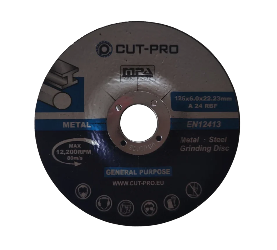 Tarcza ścierna o wymiarach 125×6,0×22,23 mm, wykonana z elektrokorundu (oznaczenie A) z ziarnem ściernym o wielkości 24, przeznaczona do ciężkich prac wymagających dużej trwałości i odporności na zużycie. Twardość R zapewnia optymalny kompromis między szybkością cięcia a żywotnością, a spoiwo bakelitowe (B) wzmocnione włóknem szklanym (F) gwarantuje bezpieczeństwo i stabilność podczas pracy.